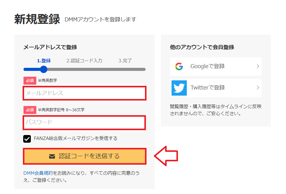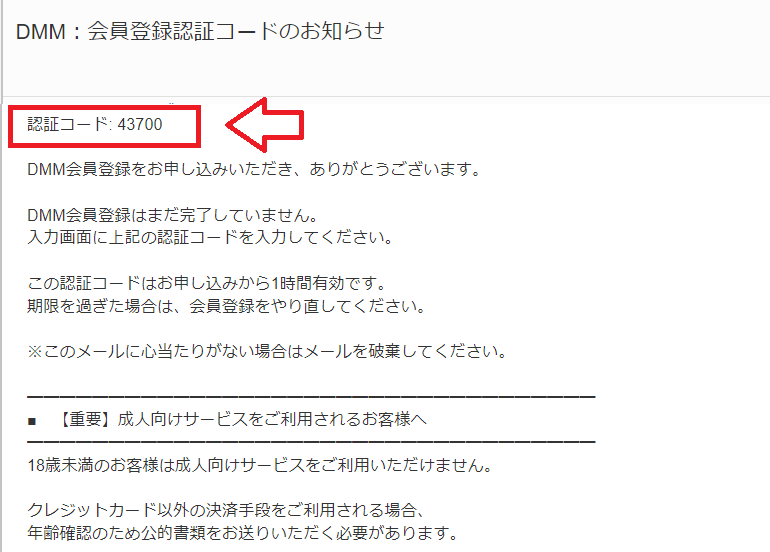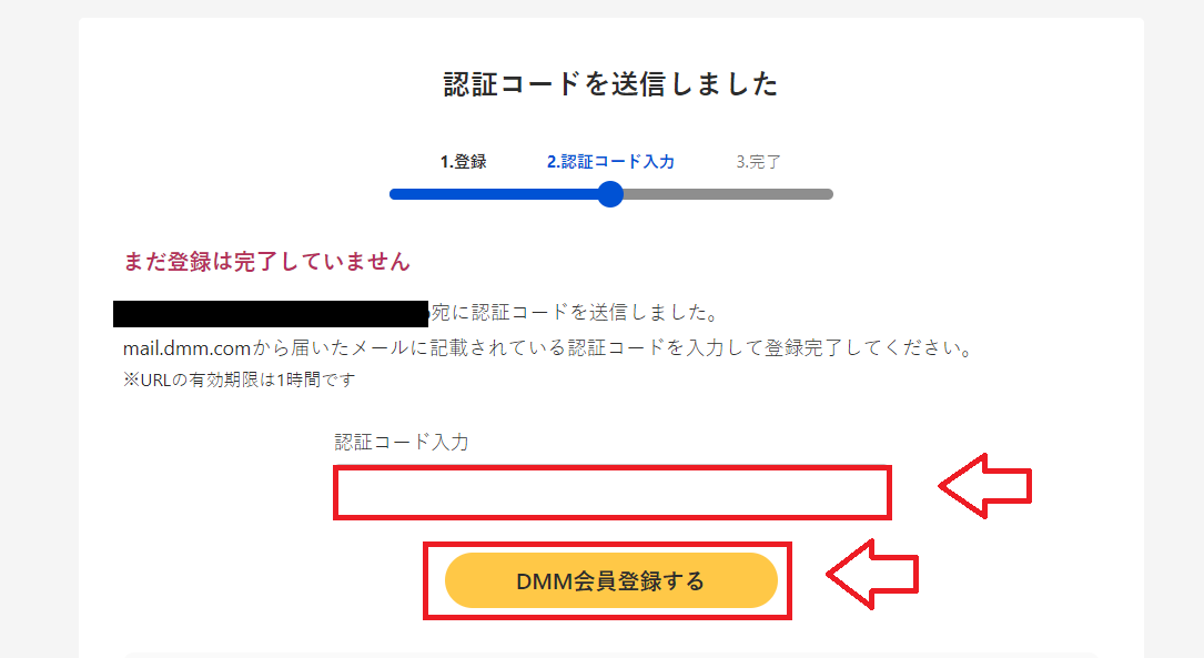 送られてきた認証コードを入力して、DMM会員登録するをクリックして会員登録完了('ω')